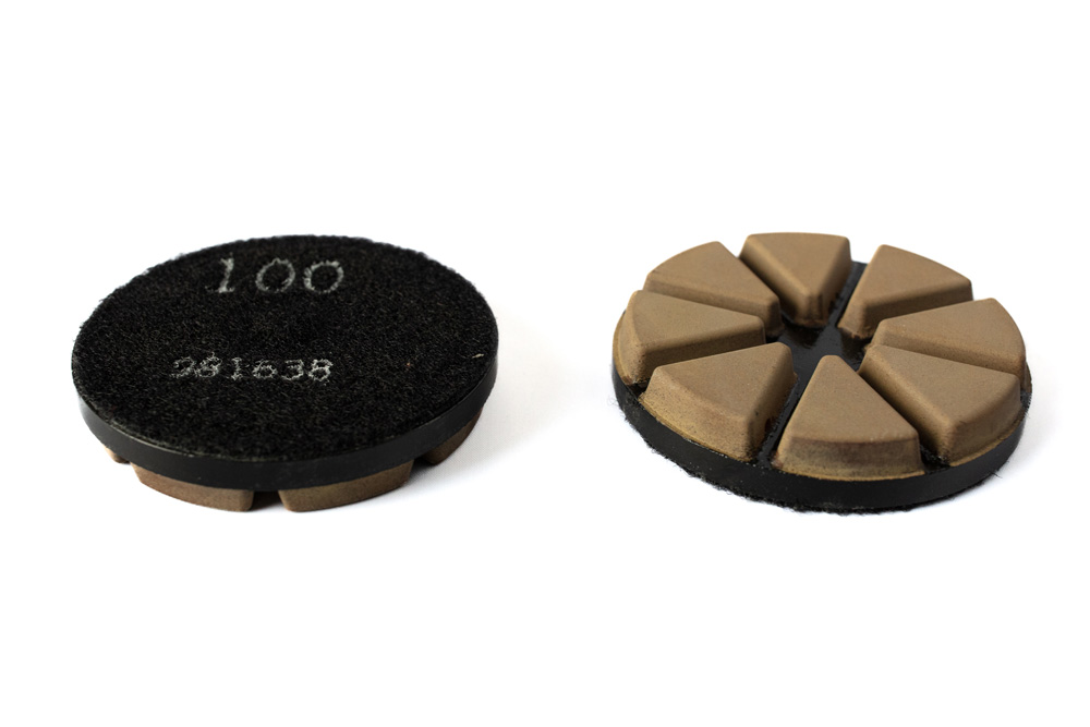 diamond grinding process to the resin polishing process. This technology is a unique ceramic bond matrix that holds the diamond particles together, giving you a long lasting and efficient polishing pad.