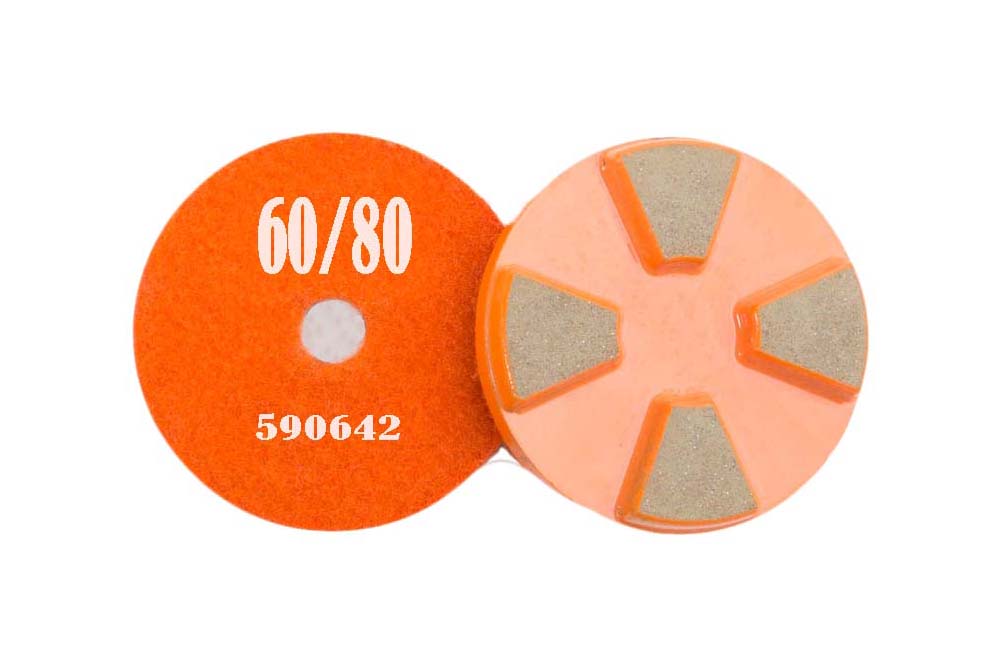 The Premium 4 Segment Transitional Diamond is used as the first step on new, hard to very hard concrete, cutting through the cream. Its unique design makes this diamond more aggressive, so it can penetrate deep into the cream, opening up the floor. The result is faster production and fewer steps. Plus, with Blue Star Diamond Technology™, a ceramic bond matrix that’s stronger than a traditional resin bond, this diamond keeps cutting when most metal bond diamonds fail, offering better lifespan and reliability so you can get the job done.