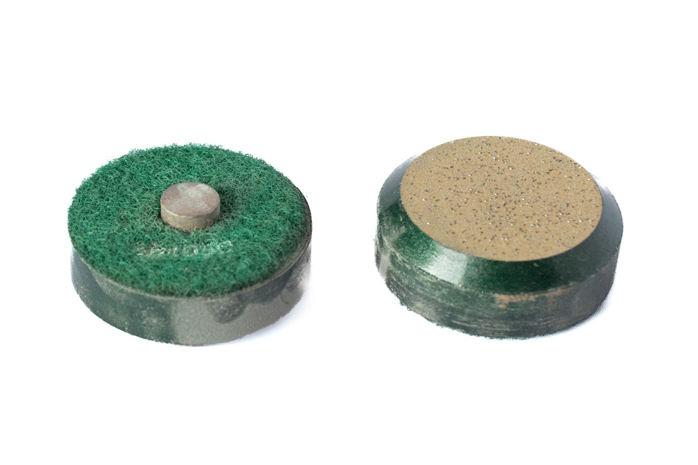 Due to the superior strength of the ceramic bond, the Premium 2” pad/puck lasts longer. It removes metal bonded scratches in one or two passes, versus the five or six a resin-bonded pad would require. By using it, you can also eliminate the last traditional metal step, making the 2” premium pad/puck more efficient.